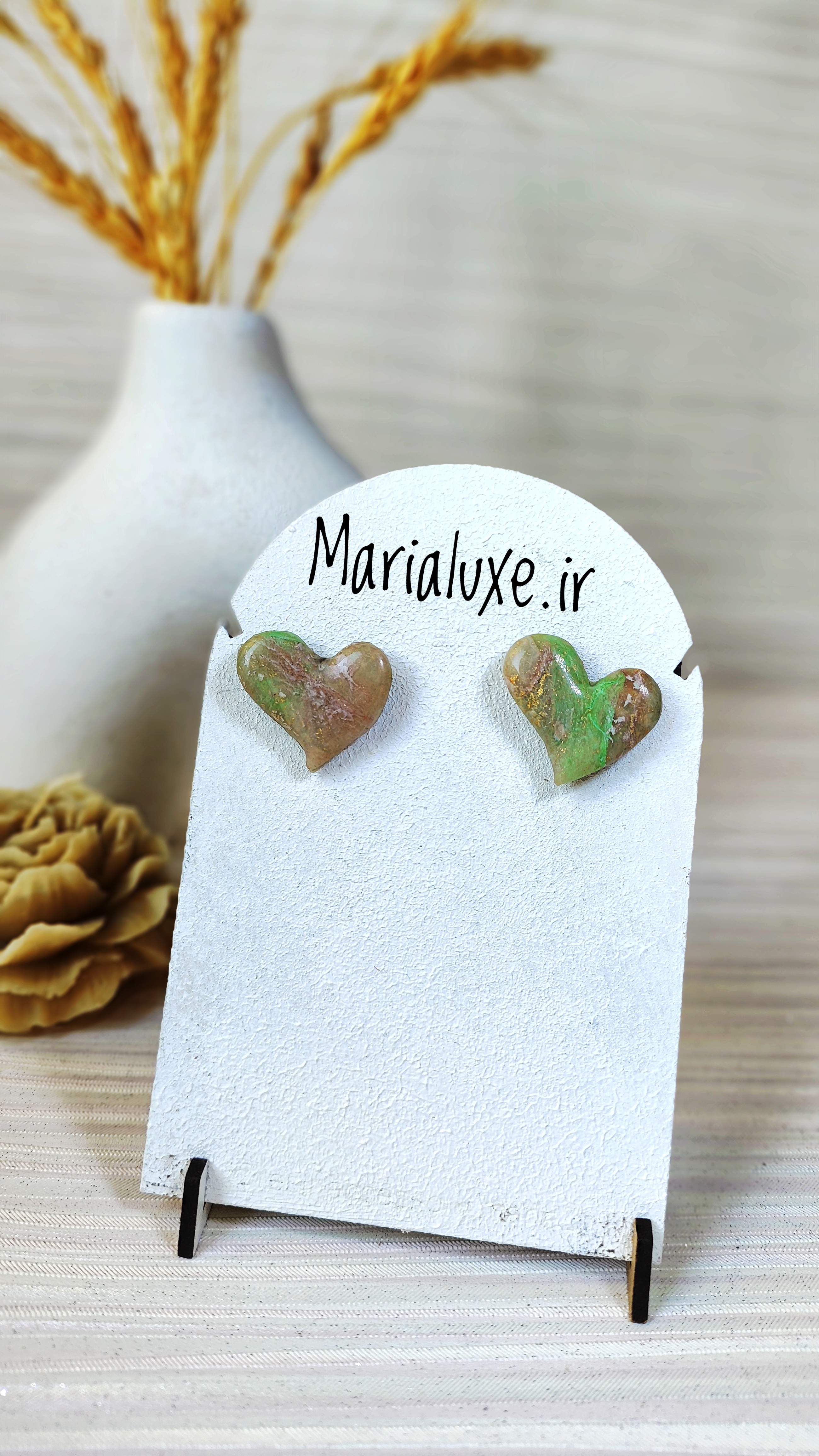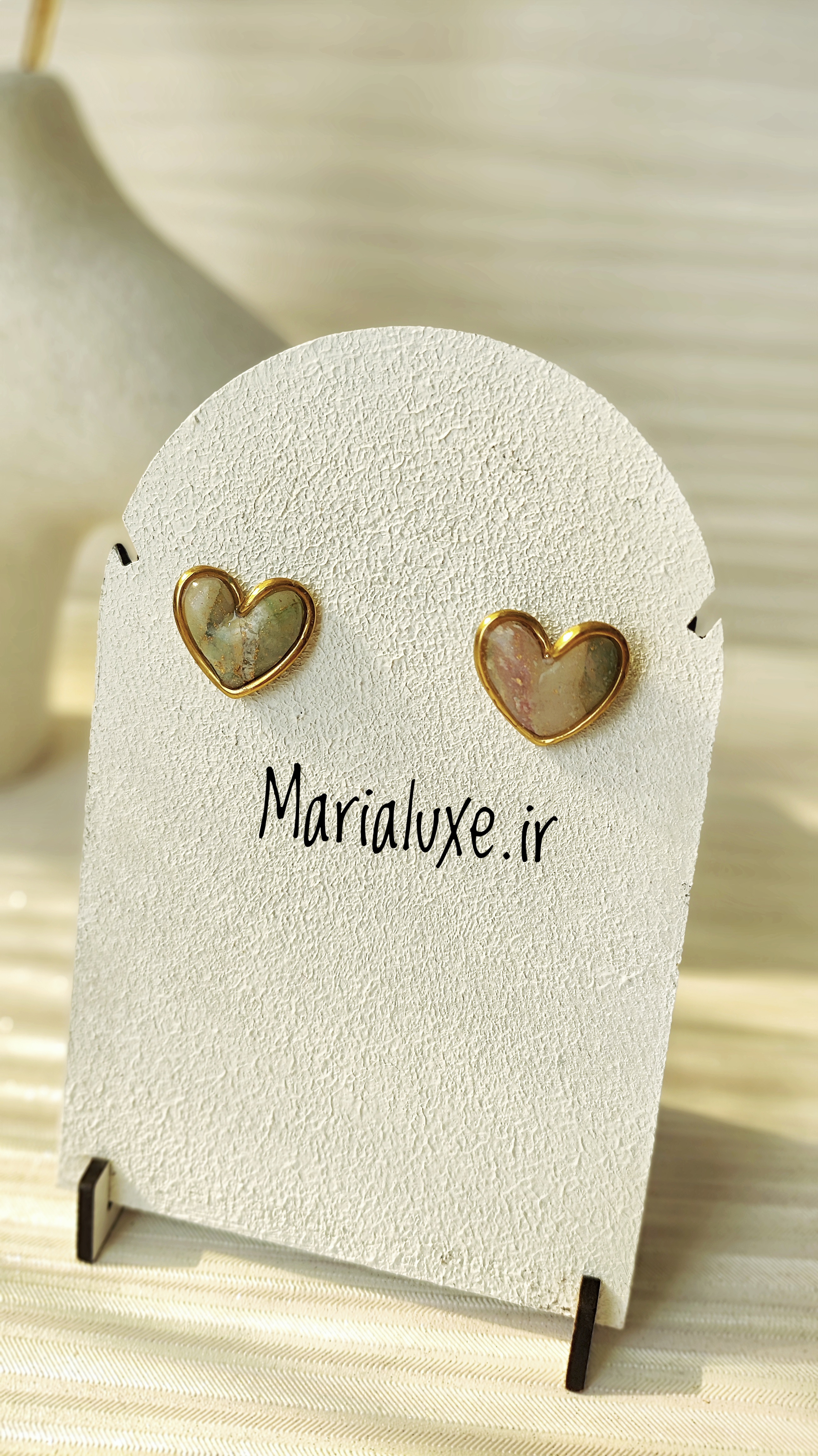 گوشواره دستساز قلبی مینیمال مرمری