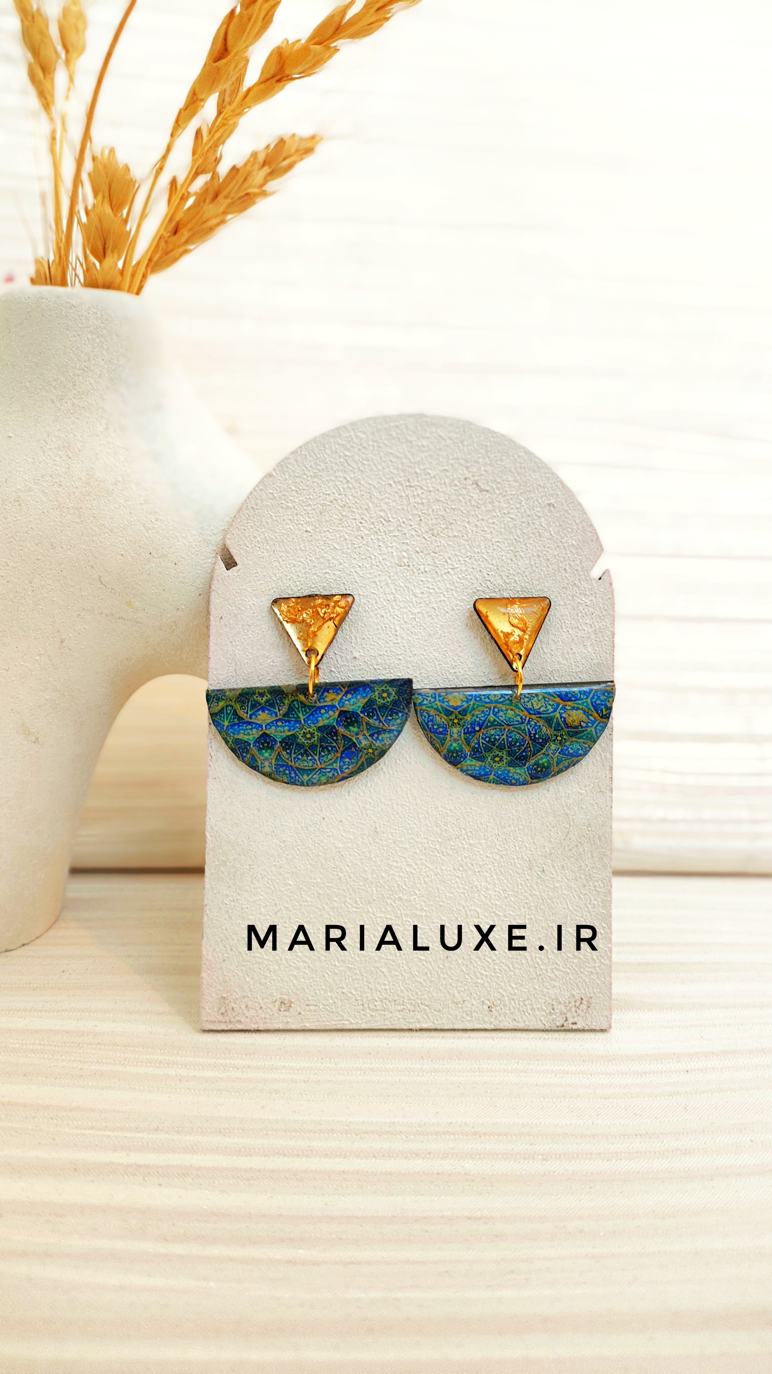 گوشواره نیم دایره دستساز رزینی طرح اصیل ایرانی