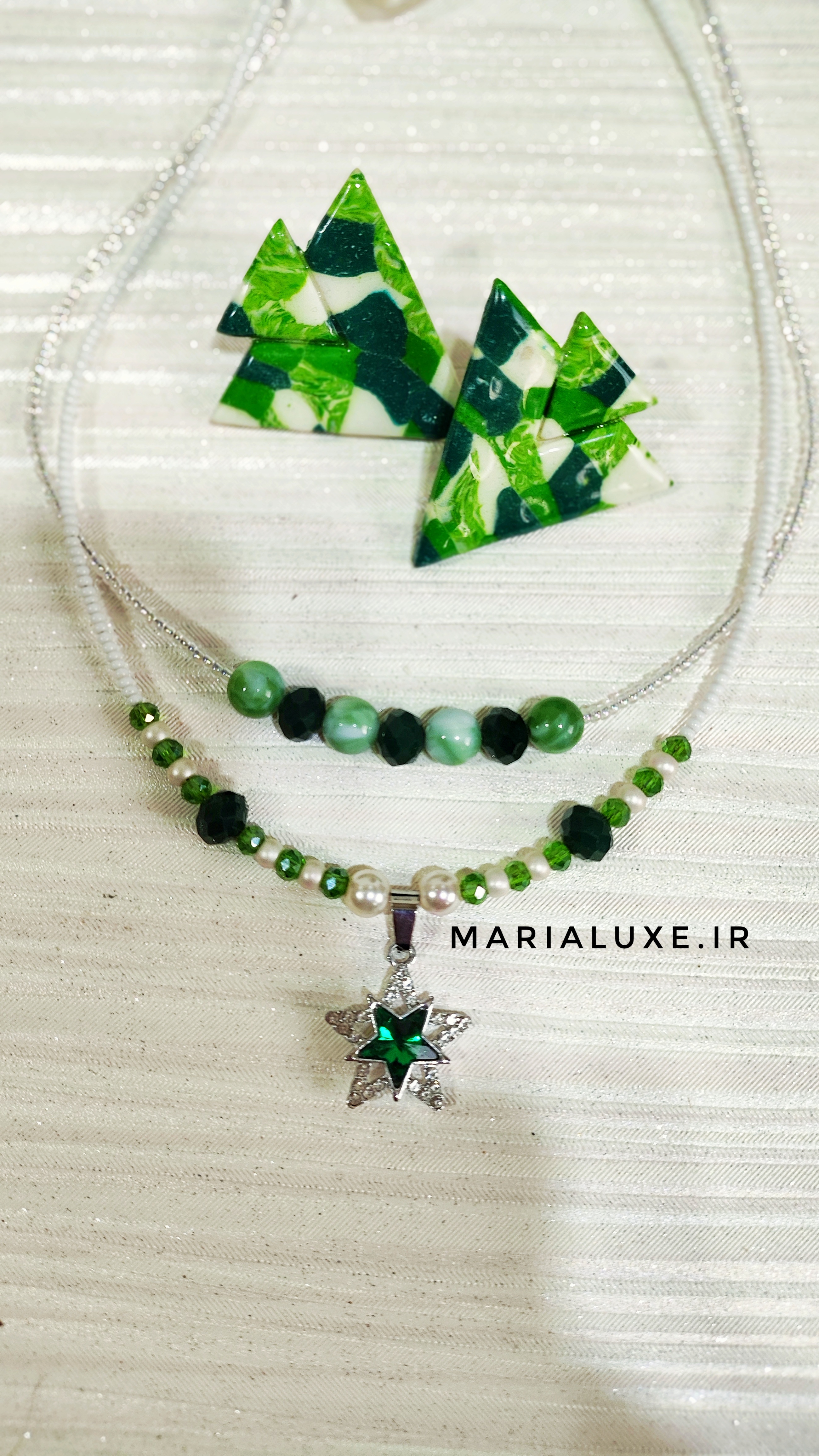ست گردنبند و گوشواره دستساز یشمی