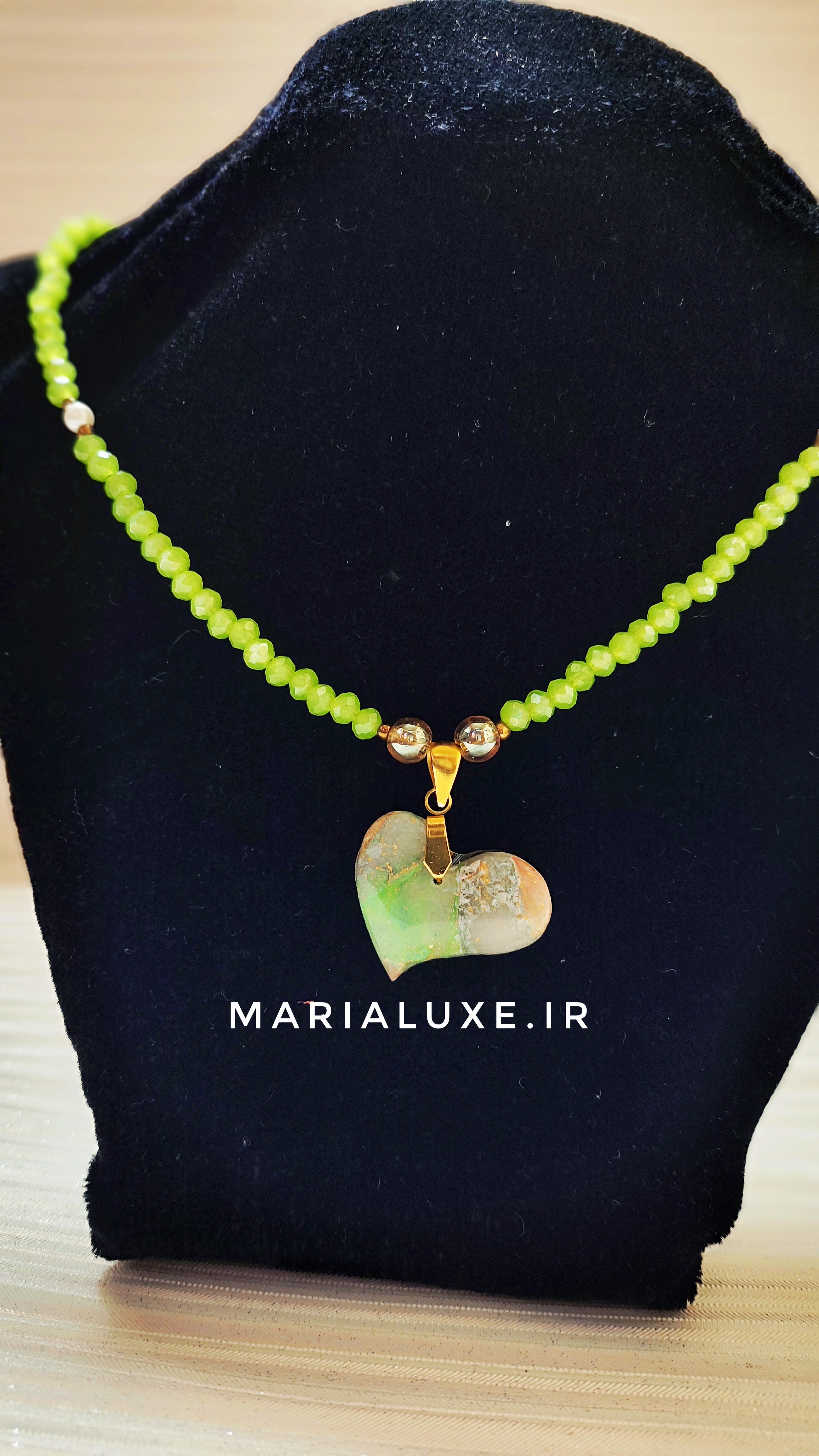 گردنبند به صورت ته گردنی است کار شده با کریستال و آویز قلب طرح مرمر دستساز