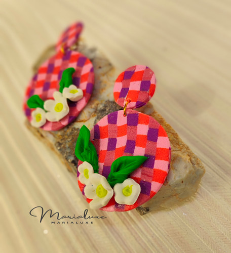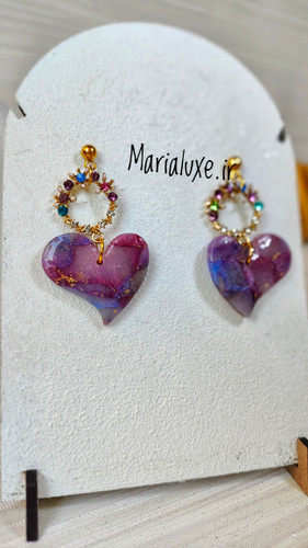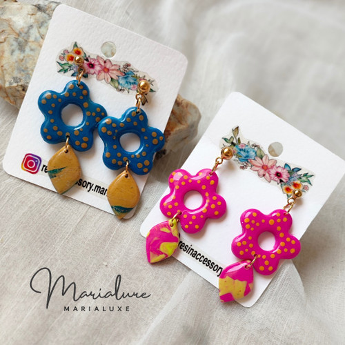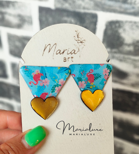 گوشواره رزین مثلث و قلب طرح فلامینگو
