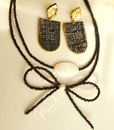 ست گردنبند و گوشواره مشکی با صدف طبیعی