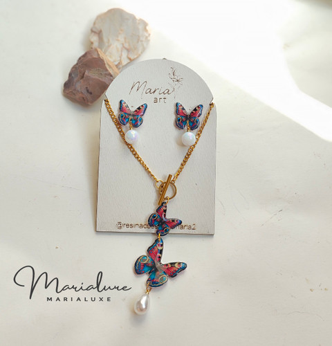 ست گردنبند وگوشواره پروانه ایی رزینی
