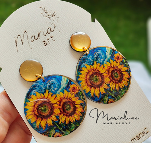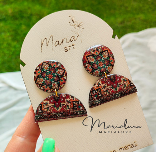 گوشواره دایره دستساز ورق طلا و پلیمر کپی