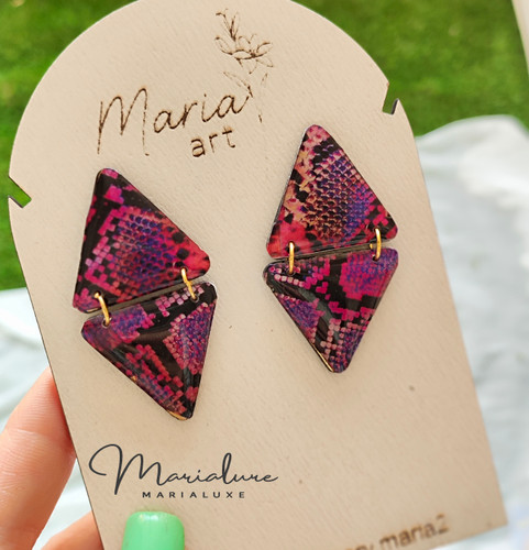 گوشواره فانتزی دستساز مثلثی پوست ماری
