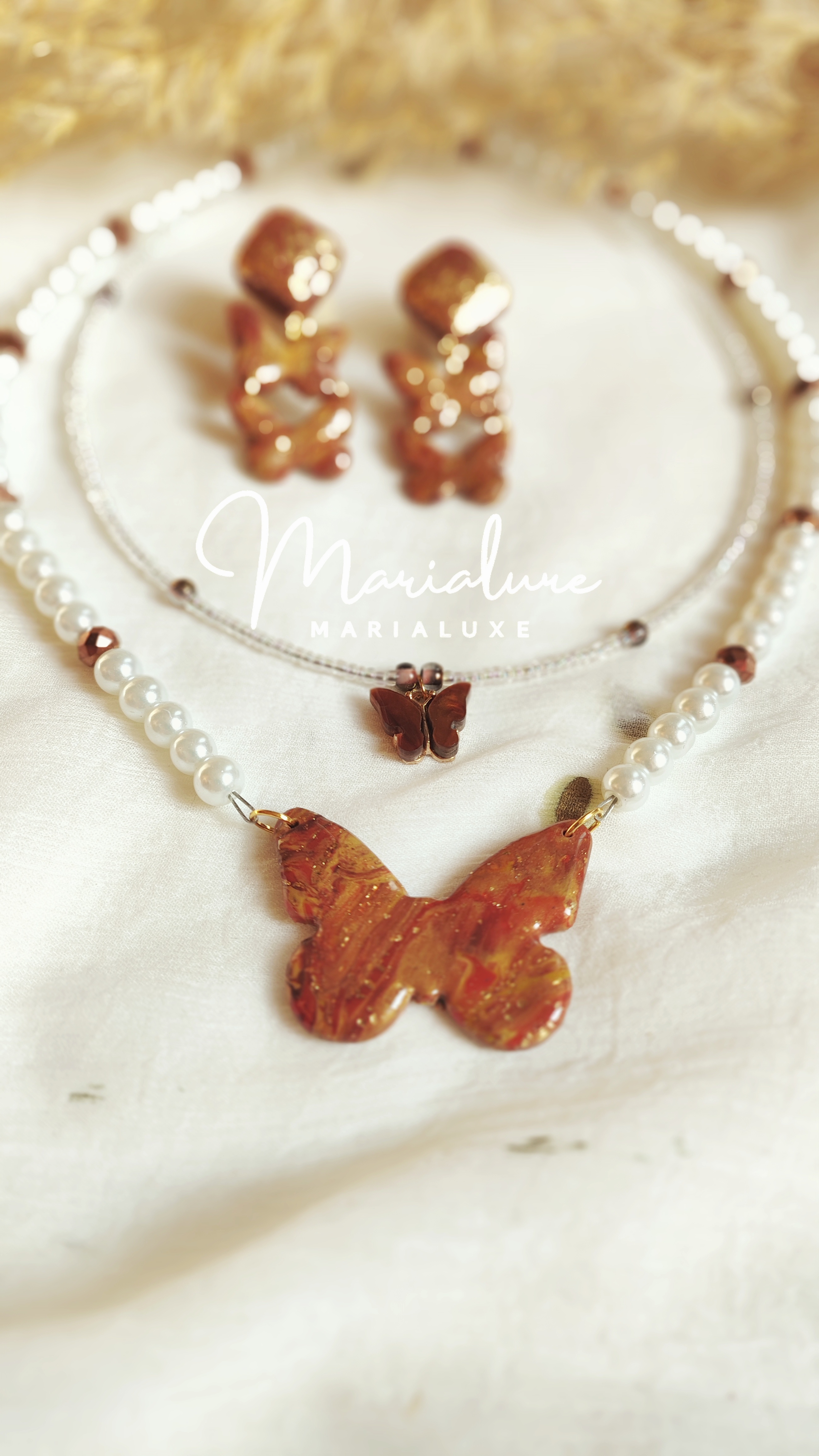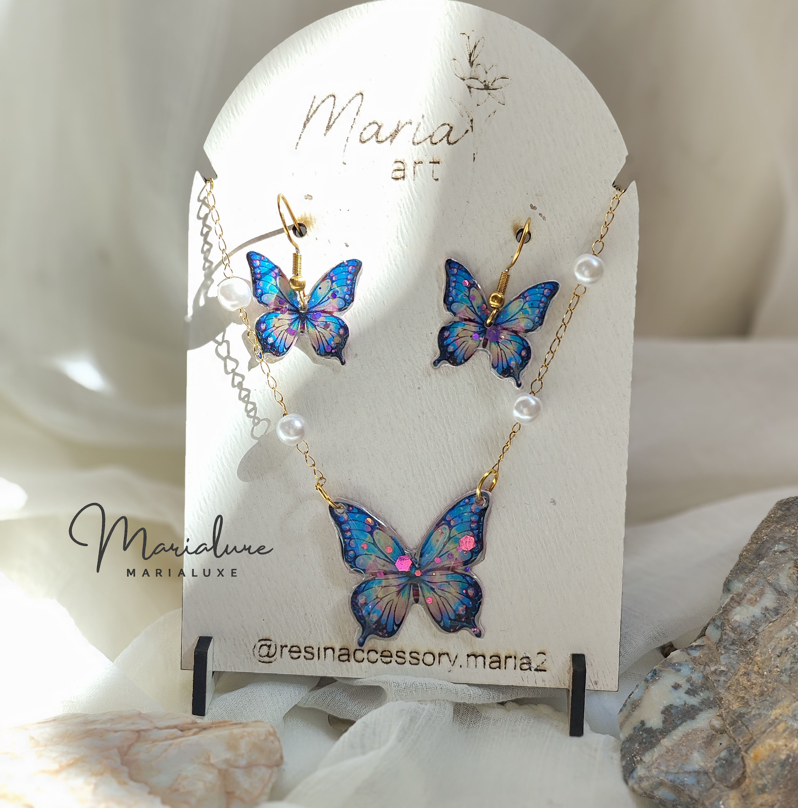 ست گردنبند وگوشواره پروانه ایی رزینی