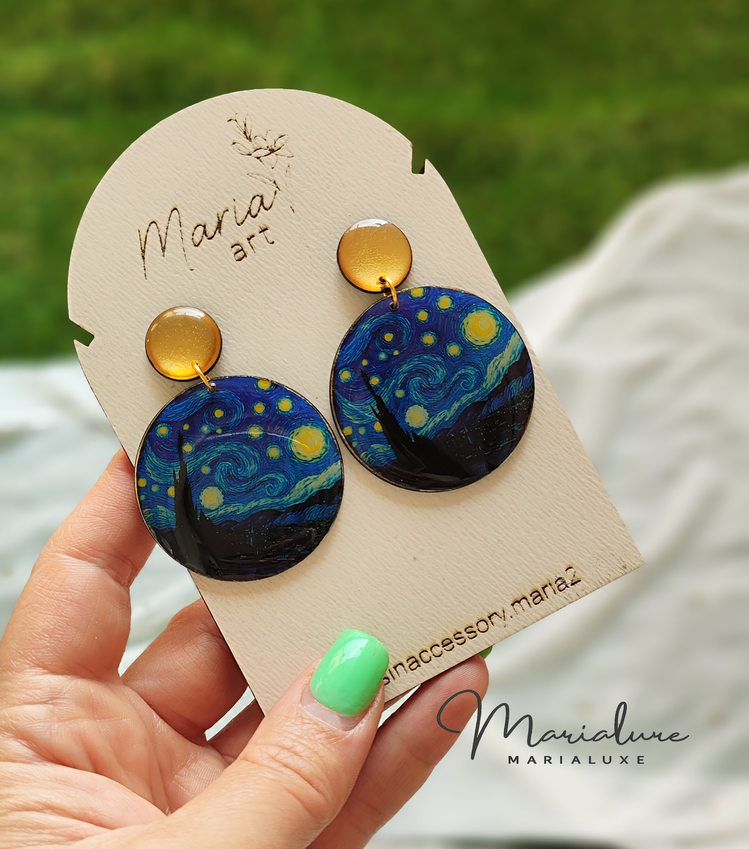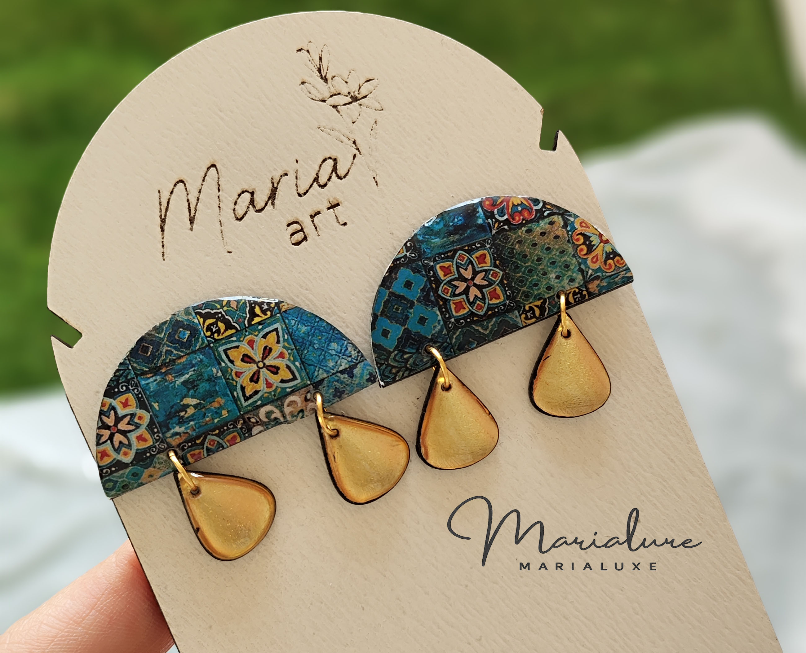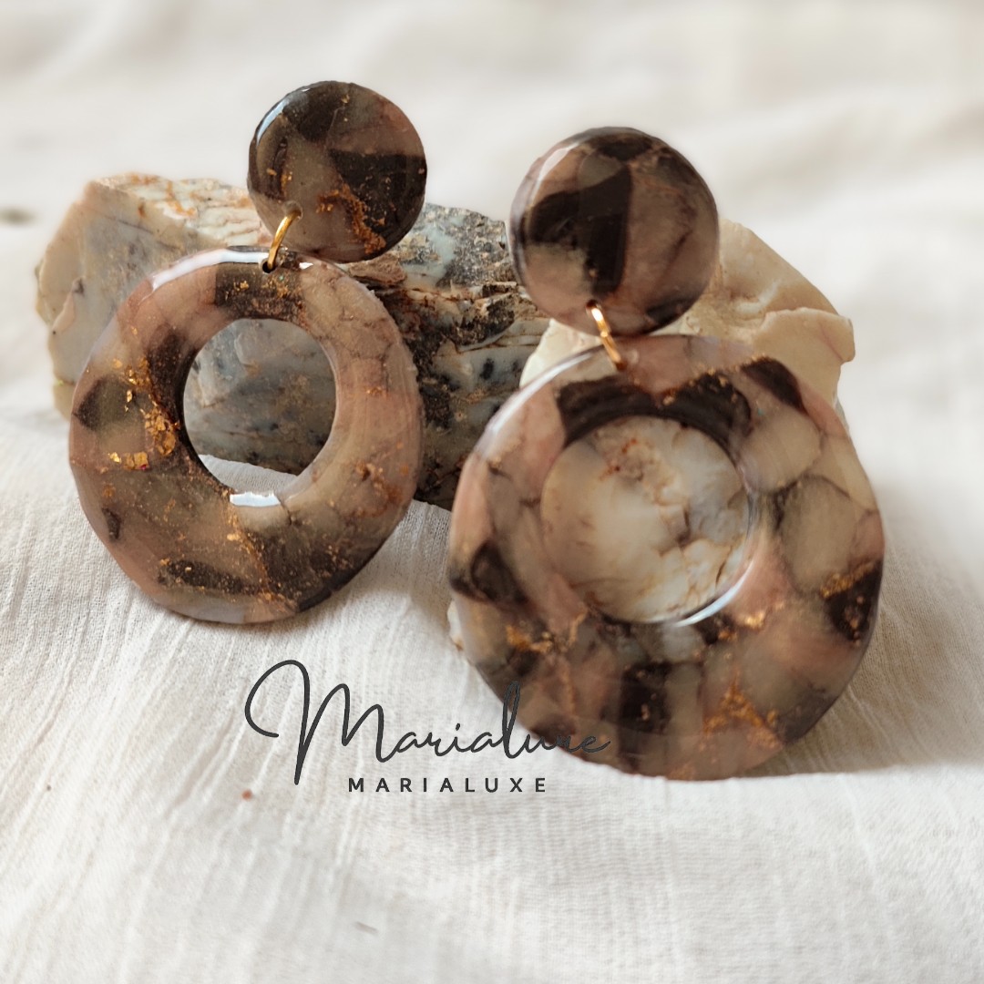 گوشواره دایره دستساز ورق طلا و پلیمر کپی