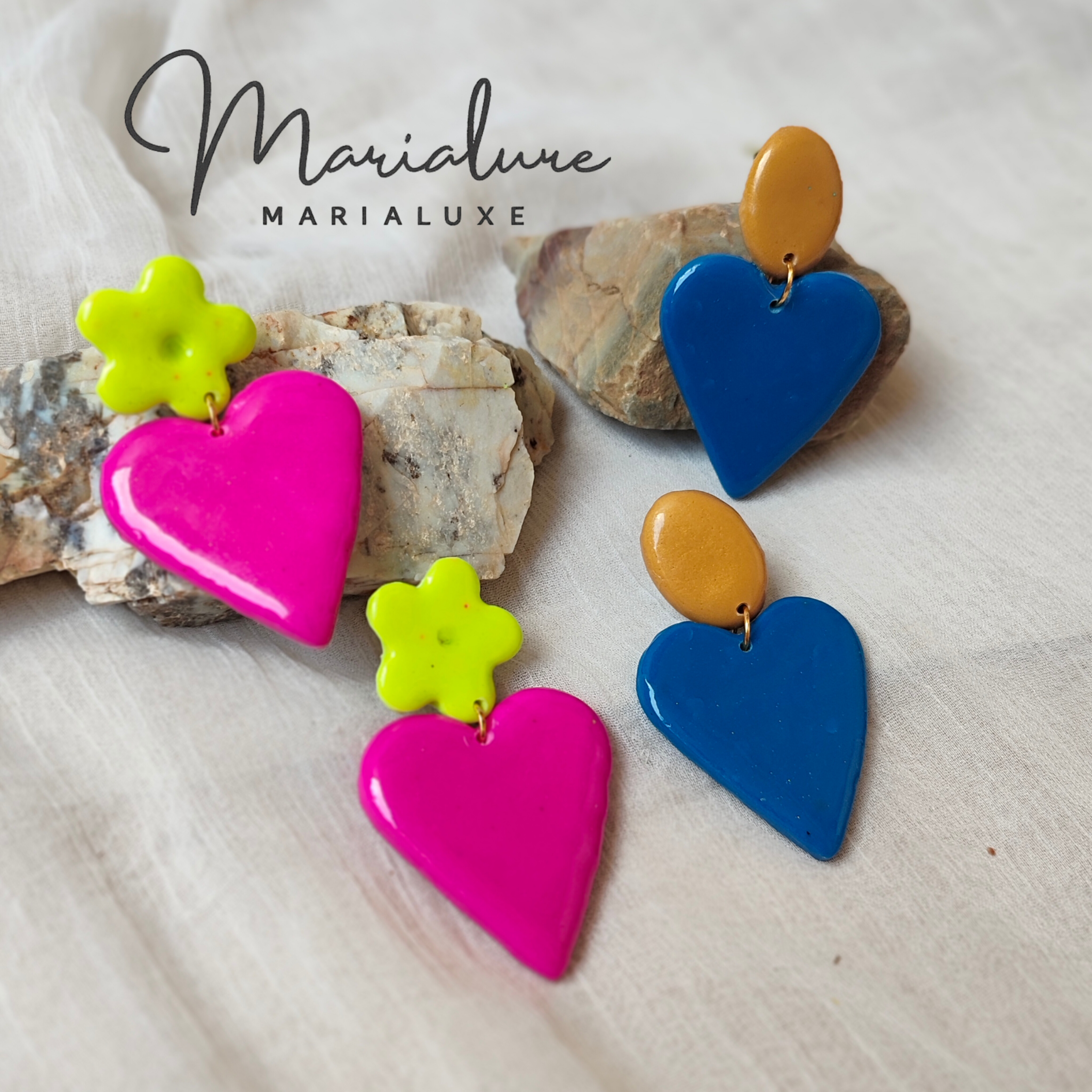 گوشواره رزین مثلث و قلب طرح فلامینگو