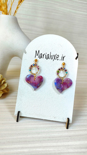 گوشواره دستساز پلیمری /قلبی مینیمال مرمری